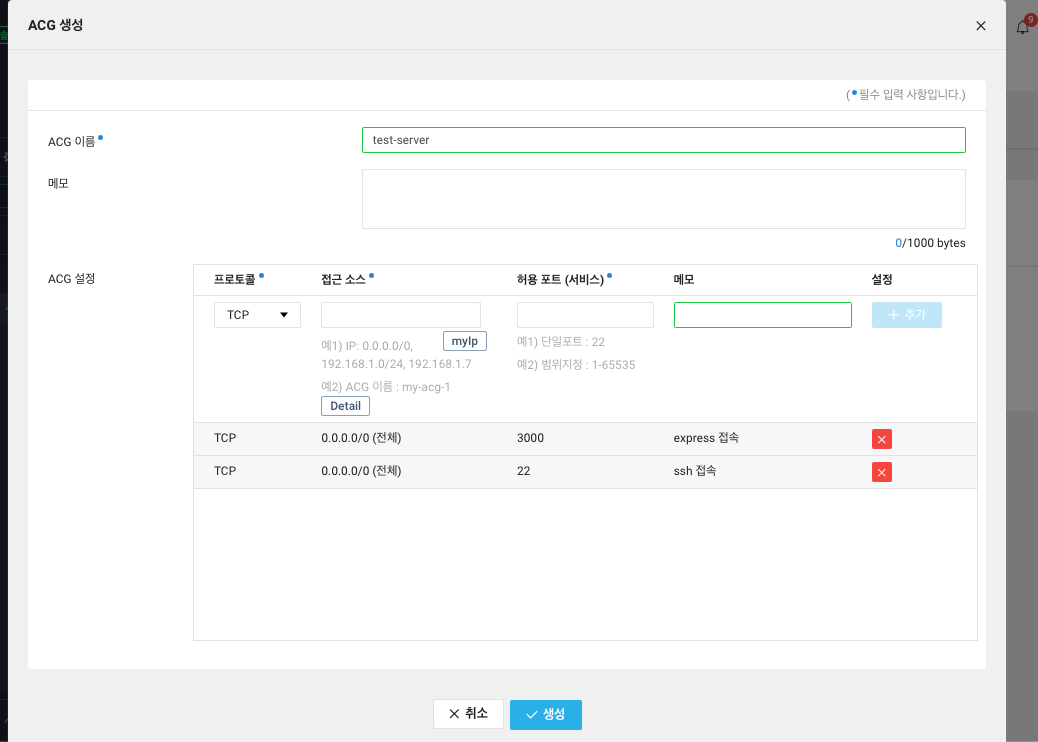ACG란 서버에서 네트워크 접근을 관리 및 제어해주는 서비스입니다.