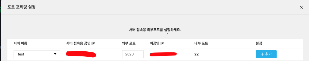 이후 연결을 할 특정 외부 포트를 입력합니다. (겹치지 않은 포트 번호를 입력해줍니다.)