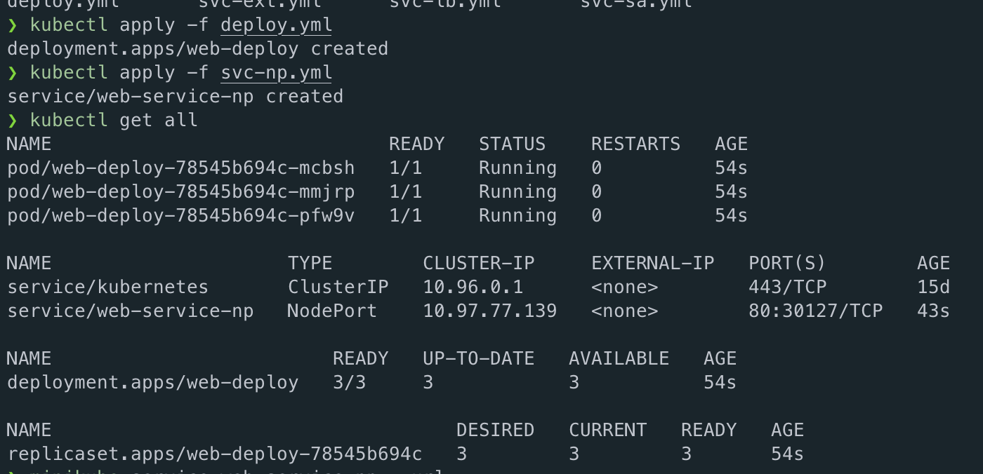 먼저 상황을 가정하기 위해 deploy.yml과 svc-np.yml을 만들어 봤다.