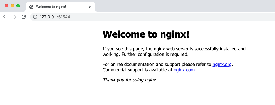 이제 127.0.0.1:바인딩된포트번호를 추가하면 minikube 환경에서 클러스터 외부에서 내부 파드에 접근할 수 있게 된다.