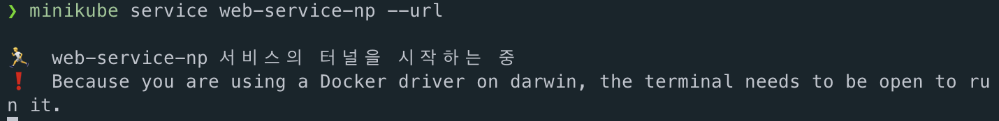 이제 minikube에서 minikube service web-service-np --url를 실행해준다.