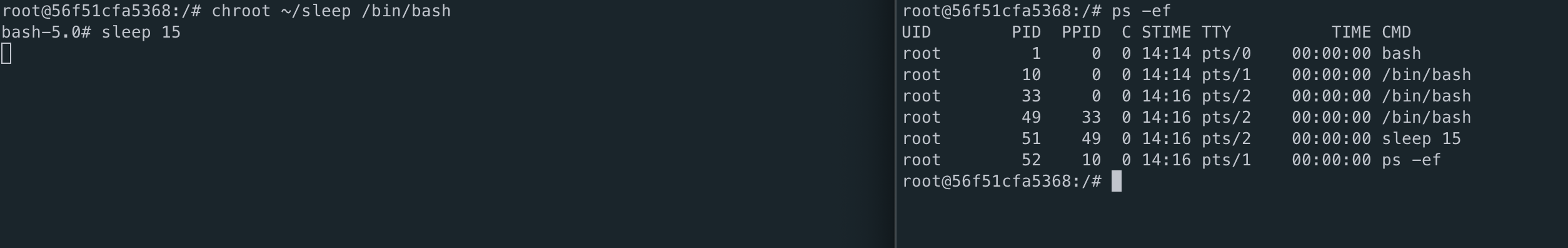 docker run -d --name chroot ubuntu:20.04