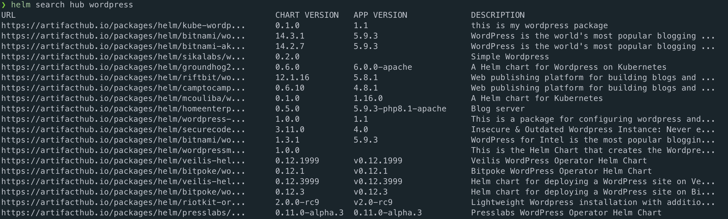 helm search repo wordpress # 레포들에서 특정 차트 가져오기