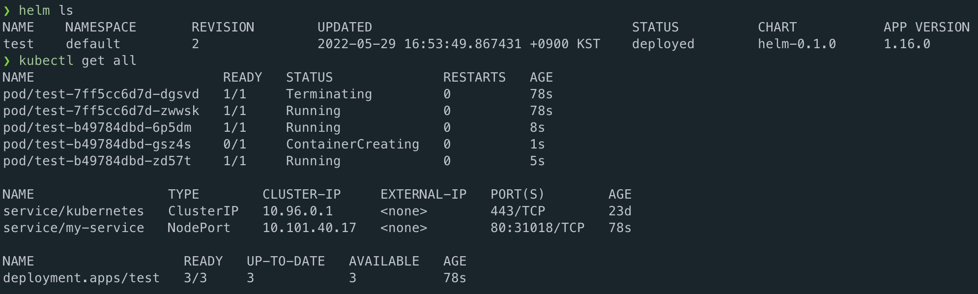 - helm history nginx-test로 변경점을 확인할 수 있다.