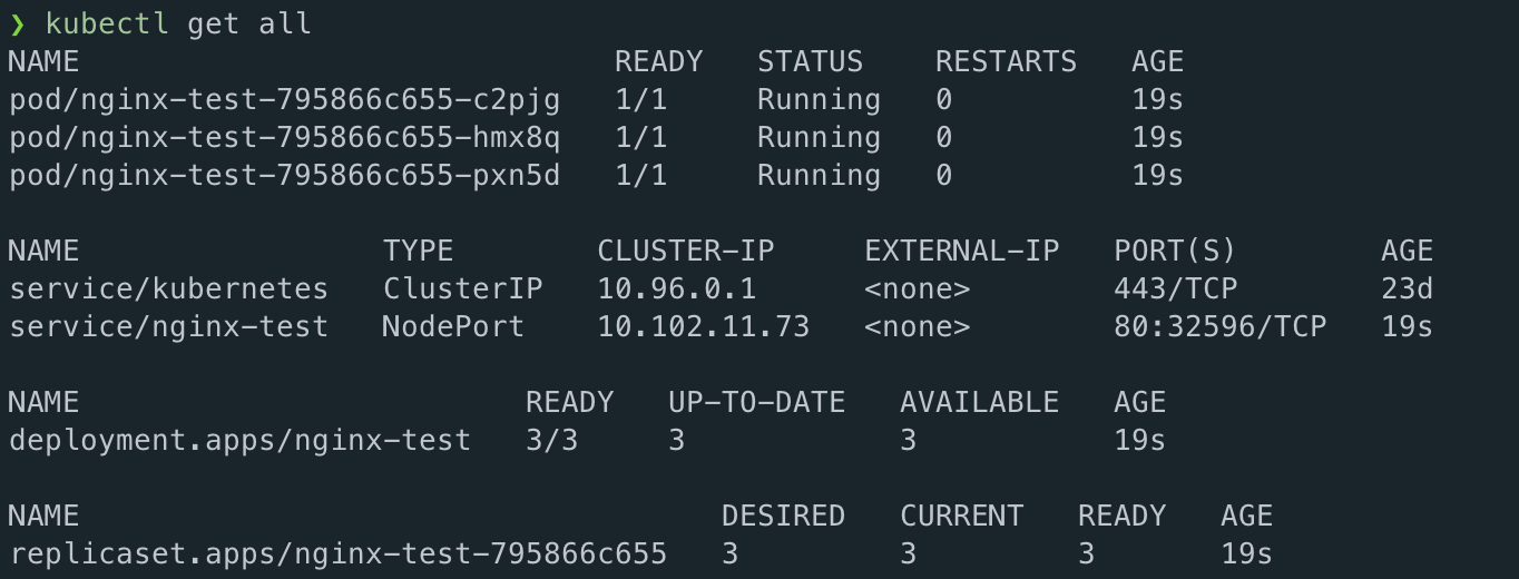 kubectl get all로 정상적으로 생성됐는지 확인한다.