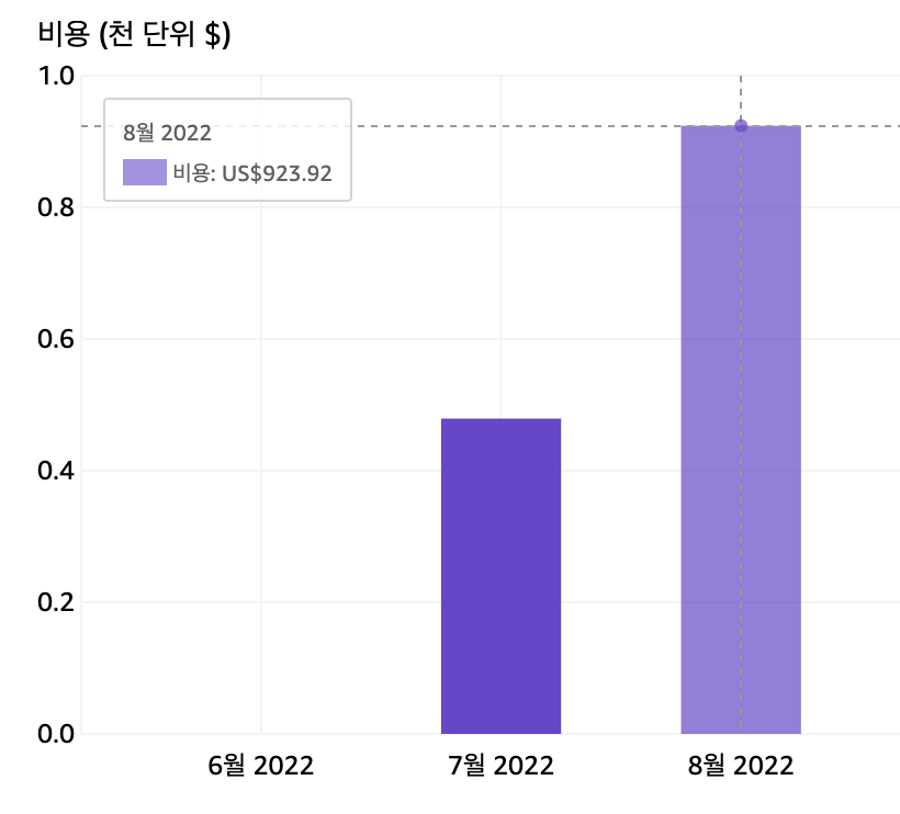 8월 중순부터 7월 AWS 비용을 넘기더니 8월 AWS 비용이 약 1000달러가 나오게 됐습니다.