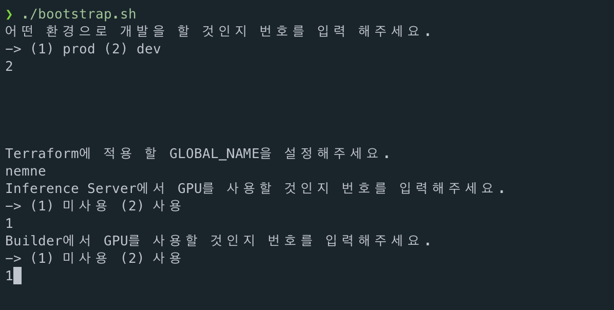 Shell Script를 통해 어떤 개발환경인지 확인하고, GPU를 사용할 것인지 등 어떤 리소스에 대해 확인할 것인지 확인합니다.