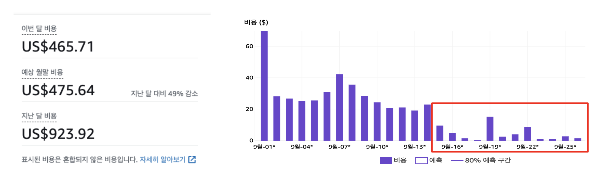 도입 기간 동안 지출한 금액(9/15 ~ 9/30 * 2)을 기준으로 계산을 했을 때에는 923달러를 썼던 8월보다 약 83%를 절감하는 효과를 봤습니다.